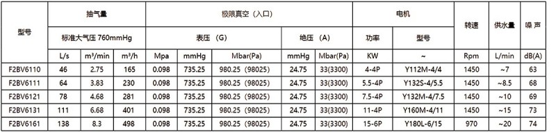 2.上列性能基于進氣溫度20℃,進水溫度15℃,排氣壓力1013hpa的條件,被吸入氣體為飽和空氣。(飽和空氣是指在對應吸入狀態(tài)下,其相對濕度為100%的濕空氣。)3.抽氣速率、軸功率性能允差10%