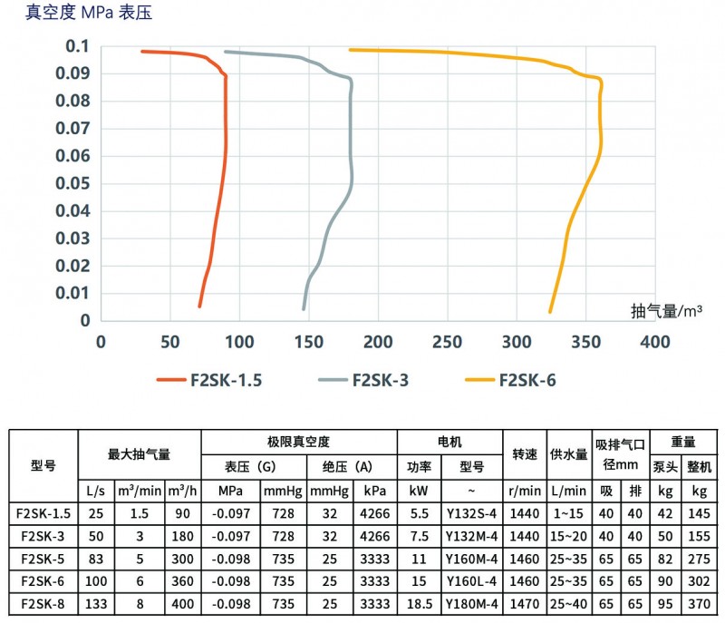 F2SK系列與FSK系列設(shè)計類似,同樣采用了徑向葉輪,它特點(diǎn)是增加了一個副葉輪,可以將真空度由-0.093提升到-0.098MPa。